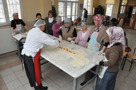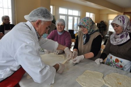 Gölbaşı Belediyesi Meziyet Yılmazer Aşevi'nde düzenlenen hamur işi kursunu 43 yıllık usta Bekir Özdemir veriyor. Pazartesi, salı, çarşamba günleri saat 11.00 ile 17.00 arasında verilen kursa Gölbaşılı kadınlar, büyük ilgi gösteriyor.