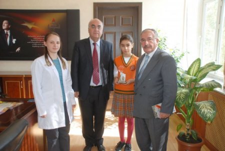 İstanbul-Altunizade Kültür ve Sanat Merkezi'nde yapılan ödül törenine katılan Adıyaman İMKB İlköğretim Okulu öğrencisi Nüpelda Coşkun, Okul Müdürü Nevzat Yetkin ve sınıf öğretmeni Sema Göl ile birlikte Milli Eğitim Müdürü Hasan Alaköse’yi makamında ziyaret ederek sevincini paylaştı.