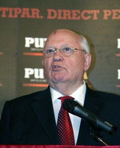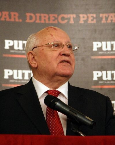 Bir gazetenin tanıtım galası için Bükreş'e gelen Gorbaçov, Bükreş Diplomat Kulübü'nde konuştu.