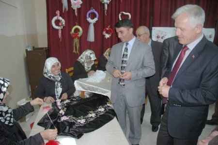 "Kadınlara yönelik düzenlenen el sanatları kursunun amacı, mesleki bilgi, beceri ve yeterlilik kazandırmanın yanı sıra hanımları sosyal ve kültürel açıdan da desteklemektir. Bu kurslar unutulmaya yüz tutmuş olan bu mesleklerin ayakta tutulmasını sağlamıştır. Bu sayede kursiyerlerimiz de gelir getirici bir mesleğin sahibi olmuşlardır." Sergi hafta boyunca açık kalacak. CİHAN