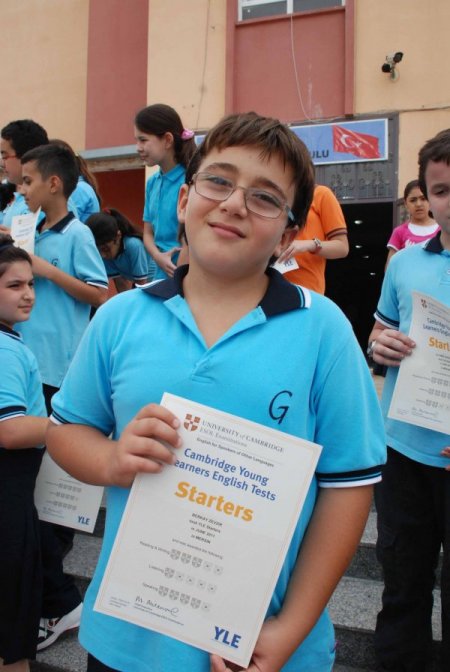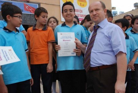 Gülen Koleji İngilizce Zümre Başkanı Özcan Dağ, “Okulumuz bünyesinde 4,5,6,7,8. sınıflardan 53 öğrencinin katıldığı İngilizce sınav sonuçları belli oldu. Cambridge (Esol) sınavı sonucuna göre startes, movers, flayers ve KET kategorilerine katılan 53 öğrencimizin tamamı başarılı olup, sertifika almışlardır ve bu gün öğrencilerimize bu sertifikalarını veriyoruz” dedi.