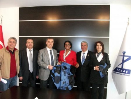 Güney Afrika Cumhuriyeti Ticaret Ataşesi Nambla Grace Yenana ve Güney Afrika Cumhuriyeti İzmir Fahri Başkonsolosu Tamer Taşkın, İZBAŞ Yönetim Kurulu’nu ve İzmir Serbest Bölgesi’ni ziyaret etti. İzmir Serbest Bölgesi, kanuni prosedürler, geniş sektör yelpazesi ve bölgenin yatırımcılara sunduğu imkanlar hakkında yapılan sunumun ardından İZBAŞ Yönetim Kurulu Başkanı Eyüp Sevimli, Güney Afrika ile Türkiye arasındaki ticaret hacminin artması gerektiğini dile getirdi. Güney Afrika menşeli ham deri kalite standardının oldukça yüksek olduğunu belirten Sevimli, Güney Afrika menşeli ham derilere Türkiye deri sektörünün ihtiyacı olduğunu ancak bugün için bu derilerin ithalatının yapılamadığını, bunun da Güney Afrika’nın yalnızca bir bölgesinde mevcut bir hayvan hastalığından kaynaklandığını söyledi. Aslında bu hastalığın sadece hayvandan hayvana bulaştığını, hayvan eti için kesildikten sonra bu hastalığın deriler vasıtasıyla taşınmadığını, Türkiye dışındaki ülkelerin Güney Afrika menşeli derileri ithal edip kendi ülkelerinin menşei altında Türkiye’ye sattıklarını anlatan Sevimli, Gıda Tarım ve Hayvancılık Bakanlığı yetkililerinin uyguladıkları bu farklı tutumun sebebini anlayamadıklarını ve bunun sektörü kayba uğrattığını sözlerine ekledi. Bu konudaki çıkmazın Türkiye tarafından kaynaklandığını ve kendilerinin çözmesi gerektiğini belirterek, Ataşe Yenana'nın yardım önerisine teşekkür etti.