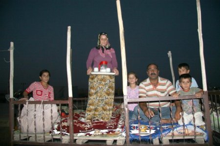 Aşırı sıcaklar yüzünden damda yatmak zorunda kaldıklarını belirten Abdulkadir Bağış, bu yılki sıcakların 80'li yıllardaki sıcaklığın üstünde seyrettiğini söyledi. 30 yıldır böyle bir sıcaklığı ilk defa gördüklerini belirten Bağış, "Klimalar yetersiz kalıyor. Bu nedenle evlerin damına çıkmaktan başkada seçeneğimiz yok. Sıcaklardan yemek dahi yiyemiyoruz. Gün batımı ile birlikte iftarlarımızı da damda tahtalardan oluşturduğumuz tahtlarda iftarlarımızı açıyoruz. İftardan sonra da yıldızlar altında serin bir ortamda sohbet ediyoruz. Sahura kadar burada sohbet eksik olmuyor." dedi.