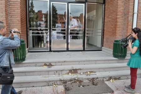 Yaşanan bu olaya tepki gösteren Öğrenci Kolektifleri üyesi bir grup öğrenci, Rektörlük makamının kapısına bir koli yumurta attı. Öğle saatlerinde Rektörlük binası önünde toplanan bir grup öğrenci slogan atıp basın açıklaması yaptı. Grup, daha sonra ellerine aldıkları yumurtaları Rektörlük binasının giriş kapısına fırlattı. CİHAN