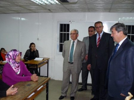 Anadolu Sağlık Meslek Lisesi salonundaki kursu ziyaret eden İl Milli Eğitim Müdürü Kadir Kılıç, okul müdürü Hasan Uçar’dan kursla ilgili bilgi aldı.
