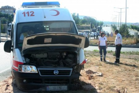 Nevşehir İl Sağlık Müdürlüğü’ne bağlı 112 Acil Servis Ambulansı hasta taşırken kaza yaptı. Kazayı ambulans şoförü ve görevliler hafif yaralanma ile atlatırken, hasta ise başka bir ambulansla hastaneye sevk edildi.