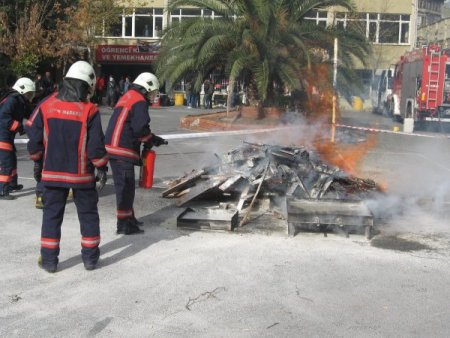 Personelin yangın söndürme eğitimini vatandaşlar ilgiyle izledi.