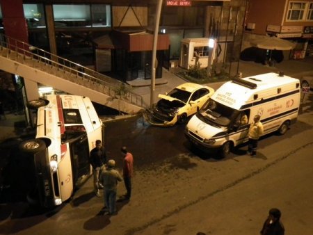 Edinilen bilgiye göre, bir hastayı hastaneye götürmek için Meşrutiyet Caddesi'nden hareket eden 06 AZ 1344 plakalı ambulansa Kocatepe'den Mithatpaşa istikametine giden 06 BM 0009 plakalı araç çarptı. Mithatpaşa ile Meşrutiyet caddelerinin kesiştiği noktada meydana gelen kazada yan yatan ambulans, üst geçit altında bekleyen 06 T 7524 plakalı taksiye çarptı. Çevredekilerin haber vermesi üzerine olay yerine polis ve sağlık ekipleri gelirken, kazada tek teselli yaralanan olmaması oldu.