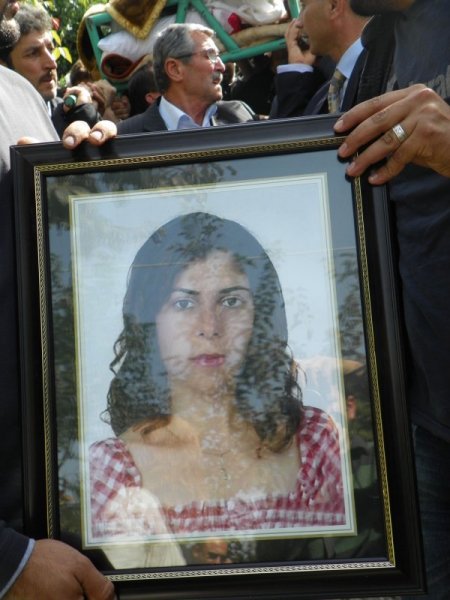 Van'da meydana gelen 7,2 şiddetindeki depremde dört aylık oğlu Doruk ile hayatını kaybeden Bahar Sultanoğlu (27) Antakya merkeze bağlı Sinanlı Köyünde düzenlenen törende toprağa verildi.
