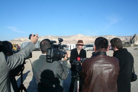 Türkiye’nin en önemli kültür, doğa ve manzara turizmi merkezlerinden Kapadokya’da final sahneleri çekilmekte olan 'Hayalet Sürücü 2' filminin yapımcısı Bennet Walsh, filmin son sahnesinin yörede çekileceğini belirterek, izleyenlerin, filmi gördüklerinde çok şaşıracaklarını söyledi.Bennet, dünyada pek çok insanın tanımadığı Kapadokya’yı, özellikle Amerikalı seyircilerin film sayesinde tanıyacaklarını kaydetti. Oscar ödüllü ünlü Amerikalı aktör Nicolas Cage’nin başrolünü oynadığı Hayalet Sürücü 2 adlı filmin final sahnelerinin çekimleri, Nevşehir’in Avanos ilçesi ile merkeze bağlı Göreme beldesinde devam ediyor.Göreme beldesinde film çekimlerinin yapıldığı muhteşem peribacaları manzaralı alanda basın mensuplarının sorularını yanıtlayan Bennet, yönetmenlerin film için çok özel bir yer aradıklarını, kendisinin aklına da 6 sene önce gezdiği Kapadokya geldiğini ve önerisinin kabul edilmesi ile final çekimlerinin burada başladığını söyledi.Çekimler sırasında Başbakan Recep Tayyip Erdoğan ile Kültür ve Turizm Bakanlığı’ndan çok destek aldıklarını belirten Bennet, bölgeye çok büyük bir prodüksiyon ekibi ile geldiklerini ve 40 tane kamyonları olduğunu kaydetti.Türkiye’deki film sektörü hakkındaki görüşlerinin sorulması üzerine ise Bennet, “Türkiye’de çok büyük bir potansiyel var. Buradaki ekip de bunu gösteriyor. Türkiye’nin çok büyük bir sinema tarihi var. Çok değişik bir aksiyon filmi çekiyoruz. Buradaki ekip de bunu çekmemizi sağlıyor.” diye konuştu.Yapımcı Bennet, başrol oyuncusu Nicolas Cage’nin basına görüntü vermesi için çalışacaklarını, ancak çok sıkı bir programı ve 2 rolü olduğunu belirterek, “Filmde, Cage’nin aslında 2 rolü bulunuyor. Biri hayalet sürücü, diğeri ise Johnny Blaze rolü. Dolayısıyla çok yoruluyor.” dedi.Kapadokya’ya gelme sebeplerinin, doğal güzellikleri tüm dünyaya göstermek olduğunu belirten ünlü yapımcı, “Filmin son sahnesi burası olduğu için Amerikalı seyirci en son Kapadokya’yı görecek. Dünyada pek çok insan burayı tanımıyor. Filmin sonunda gördüklerinde çok şaşıracaklar.” diye konuştu.Film çekimlerine kasım ayında başladıklarını belirten Hayalet Sürücü 2 filminin yapımcısı Bennet Walsh, filmin 3D olarak Şubat ayında vizyona gireceğini açıkladı. CİHAN