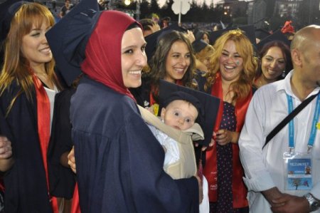 Eğitim Fakültesi İşitme Engelliler Öğretmenliği mezunu olan Esra Ökten de dönem içerisinde doğan 3 aylık bebeği ile mezuniyet sevincini yaşadı. “Tam bölümün ortasında doğdu. Güzel oldu. Kolay bir bebek oldu. Seminerden çıktım doğuma gittim.” diyen Ökten, sınavlardan çıkıp doğuma gittiğini ve hocalarının da desteği ile mezun olduğunu söyledi. Ökten, birinci sınıfta da bir çocuğunun olduğunu ve mezuniyetle birlikte ikinci çocuk ile çifte mutluluk yaşadığını söyledi.
