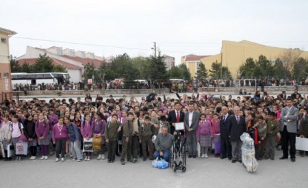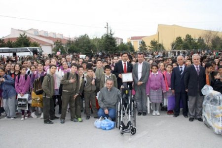 Okul bahçesinde düzenlenen törene, okul öğrenci ve öğretmenlerinin yanı sıra, Eskişehir Sakatlar Derneği Yönetim Kurulu üyeleri ve Başkanı Cafer Eşen de katıldı. Toplanan kapakların Başkan Eşen’e tesliminin yapıldığı törende konuşan Okul Müdürü Önder Uçak, “Çocuklarımız bu kampanyada çok çalıştı. Mahallemizde apartmanlarda, sitelerde anne ve babaların iş yerlerinde kapaklar toplandı. Bu çalışmayı yürüten çocuklarımızı tebrik ederken, bundan sonra da engellilerimize destek vermeye devam edeceğiz.” dedi.