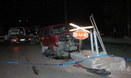 Kütahya'da yük treninin hemzemin geçitte minibüse çarpması sonucu 2 kişi yaralandı.
