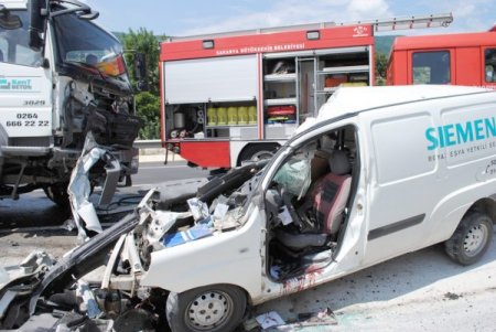 Sakarya'nın Hendek ilçesinde D-100 karayolunun Hicriye köyü mevkiinde yol çalışması nedeniyle bölünün yolda panelvanın kamyonla çarpışması sonucu 2 kişi öldü.