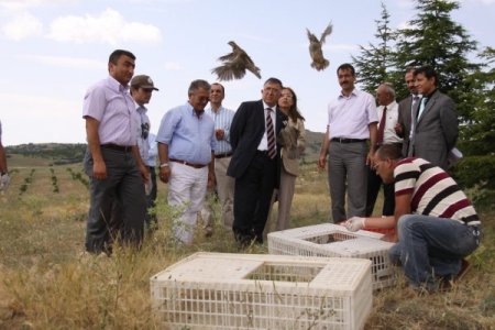 Yapılan konuşmalarından ardından kınalı keklikler doğaya salındı.
