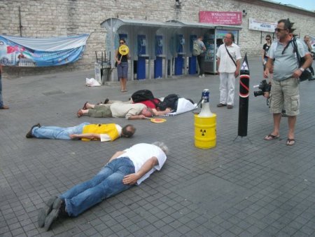 Amerika Birleşik Devletleri'nin (ABD) 6 Ağustos 1945 yılında Japonya’nın Hiroşima kentine attığı atom bombası sonrası yaşamını yitirenler Beyoğlu’nda anıldı. Taksim Meydanı’nda basın açıklaması yapan grup, ölenlerin anısına bir dakikalığına yüz üstü yere yattı. ABD’ yi protesto eden grup, Türkiye’de nükleer santral istemediklerini dile getirdi.