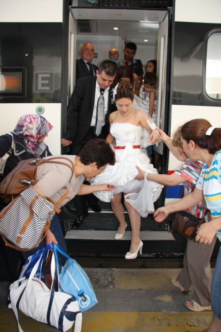 Ankara'da bir çift Yüksek Hızlı Tren'i gelin arabası yaparak Eskişehir'e geldi. Hızlı trende tanışan 27 yaşındaki Göknil Yardımcı ile İlker Bağcı, Ankara’da nikahları kıyıldıktan sonra, hızlı tren ile yaşacakları Eskişehir’e geldiler.