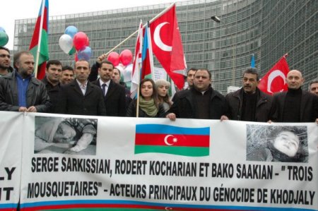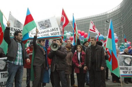 Belçika Azerbaycan Dostluk Cemiyeti tarafından, "Hocalı Vahşeti'ni kınamak ve Ermeni işgali ve terörüne dikkat çekmek" amacıyla bir gösteri düzenlendi. ‘‘Hocalı'yı unutmadık, unutturmayacağız. Katil Ermenistan’’ sloganlarının öne çıktığı Brüksel\'deki mitinge katılım çok yoğun olmadı. Avrupa Komisyonu ve Avrupa Konseyi binalarının bulunduğu Schuman Meydanı’nda toplanan elli kadar vatandaş Hocalı katliamını protesto etti. Katliamda hayatını kaybedenler için bir dakikalık saygı duruşunun ardından Türk ve Azeri milli marşları okundu.