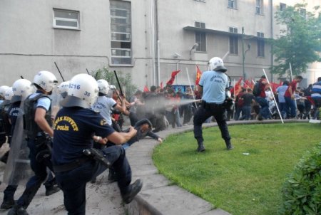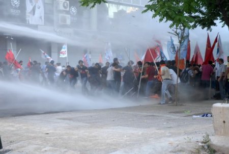 Polis gruba tazyikli su suyla müdahale etti. Bunun üzerine biraz geri çekilen grup daha sonra yerden söktüğü taşlarla polise saldırdı. Polis, tazyikli suyun ardından bu kez biber gazıyla gruba müdahale etti. Biber gazı atılmasının ardından dağılan gruptaki eylemcilerden bir bölümü otobüs duraklarına kaçarken, bir bölümü ise eski Sümerbank önüne kadar yürüdü.