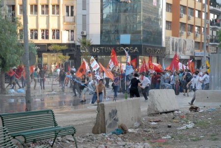 Hopa'daki olaylarda geçirdiği kalp krizi sonrası hayatını kaybeden Metin Lokumcu'nun ölümünü bahane eden ve aralarında ÖDP, KESK, Halk Evleri, Sosyalist Parti, TKP, Öğrenci Gençlik Kolektifleri, Toplumsal Özgürlük Platformu, Dev-Genç Birliği gibi oluşumların yer aldığı grup, AK Parti İzmir İl Başkanlığı binasının önüne yürüdü. Burada basın açıklaması yapan yaklaşık 100 kişilik grup, dağılmak üzereyken parti binası önünde önlem alarak barikat kuran Çevik Kuvvet polislerine önce yumurta attı. Daha sonra polislere, sopa ve taşlarla saldırarak ortalığı savaş alanına çevirdi.