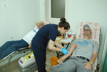 Kan bağışı kampanyasına katılarak kan veren vatandaşlara ikramda bulunuldu.