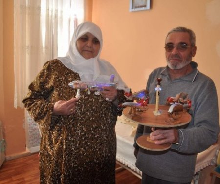 Yozgat İl Sosyal Hizmetler İl Müdürlüğü Alparslan Türkeş Huzurevi'nde kalan yaşlı çiftlerin yaptığı maket uçaklar vatandaşların araçlarını ve evlerini süslüyor.