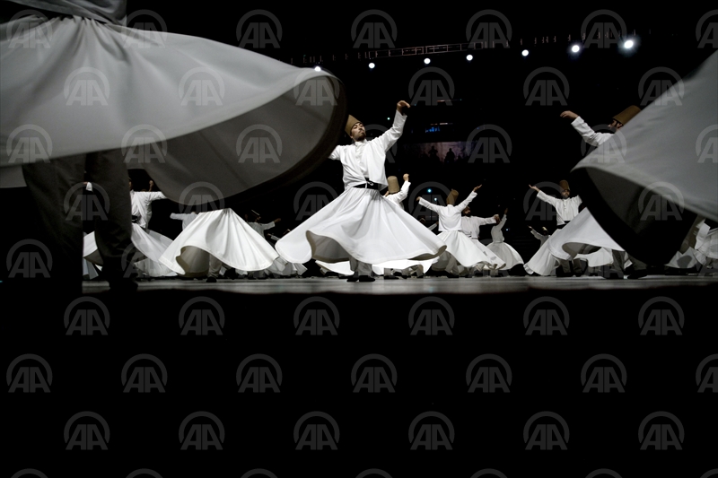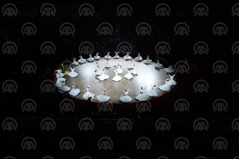 Konya Büyükşehir Belediyesi Kongre ve Spor Merkezi'nde düzenlenen Hz. Mevlana'nın 744. Vuslat Yıl Dönümü Uluslararası Anma Töreni'nde Kültür ve Turizm Bakanlığı Konya Türk Tasavvuf Müziği Topluluğu üyeleri sema ayin-i şerifi icra etti.