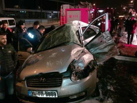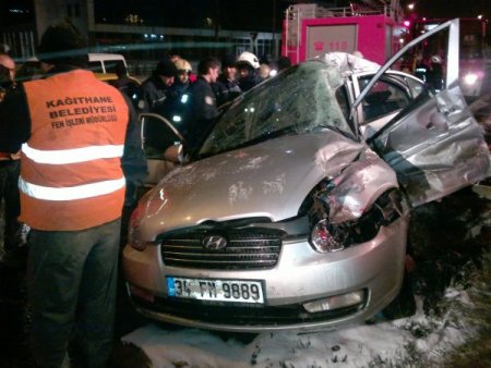Kağıthane’de yan yoldan ana caddeye çıkan otomobile İETT otobüsü çarptı. Araçta sıkışan otomobil sürücüsü Hakkı Üzüm (41), itfaiye ekipleri tarafından çıkartıldı. Üzüm, sağlık ekiplerinin müdahalesine rağmen olay yerinde yaşamını yitirdi.