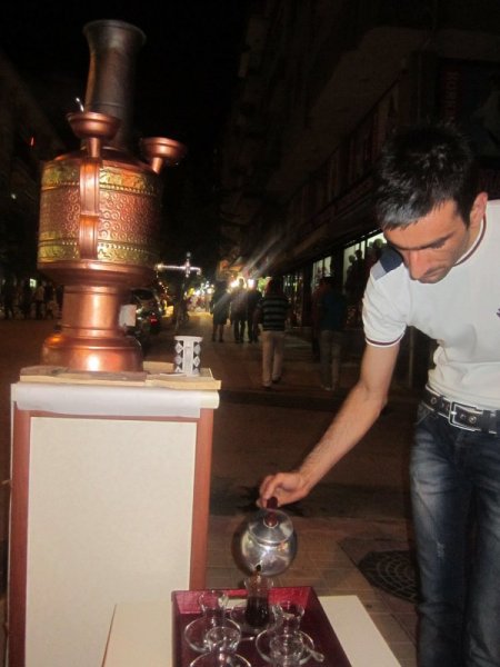 Cumhuriyet Caddesi'nde hemen hemen her köşede kurulan dev semaverler, ilçede semaver geleneğinin de sürdürüldüğünün kanıtı adeta. Teravih namazından sonra tıklım tıklım dolan caddede ailece gezen vatandaşlar, semaverde çay içmeden evlerine gitmiyor. Her biri yaklaşık 15 litre kapasiteli olan semaverler yaklaşık 4 demlik çay alıyor. Çay keyfi gecenin ilerleyen saatlerine kadar devam ediyor.