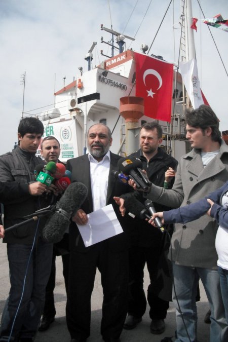 İHH Başkanı Bülent Yıldırım, yardım malzemelerinin yüklendiği geminin yanına gelerek incelemelerde bulundu. Libya’ya gönderilecek malzemeleri halka ulaştırmayı istediklerini dile getiren Yıldırım, amaçlarının siyasi değil tamamen insani yardım olduğunu vurguladı. Yardım gemisinde 50 yataklı bir mobil hastane bulunduğunu ifade eden Yıldırım, “ Mobil hastanenin yaklaşık değeri 2 milyon lira civarında. Büyük hizmet yapacağına inanıyorum. Gemi Misrata limanına yaklaşık 1 hafta 10 gün içinde ulaşacak. Amacımız; daha çok yardım ve daha çok hizmet yapmak. Biz herhangi bir siyasi hesap içinde değiliz. Orada çeşitli yerlerde temsilcilikler açtık. Ve bir çok yaralıya yardım ettik. Göndereceğimiz mobil hastane de Libyalıların yaralarını saracaktır. “ diye konuştu.