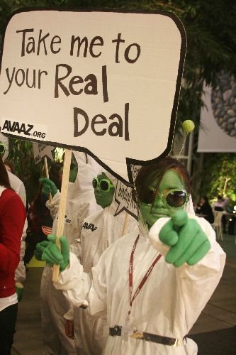 Dünyanın sonuna yaklaştığını sadece son bir şansımızın kaldığını söyleyen 'uzaylı eylemciler' zirveden bütün ülkelerin üzerinde mutabık kalacağı etkili bir anlaşmayla çıkılmasını istiyor.