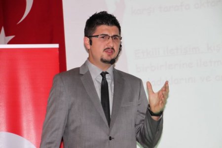 Konferansa konuşmacı olarak katılan Uzman Psikolog Onur Gürsoy, iletişim bozukluğunda yaşanan her türlü sorunun insan hayatının her zaman önüne sorun olarak çıktığını söyledi. İletişim alanlarının birçok dala ayrıldığını ifade eden Gürsoy, sözlü hitabette tavır, eda ve hareketlerin, sözlerin anlamını değiştirdiğini söyledi. Gürsoy, “Karşınızdaki birisine hitap ederken yumuşak tonda yapacağınız uyarı insanı kırmaz. Ancak sert bir tonla aynı sözleri söylediğinde söz aynı kalır. Ancak anlamı değişir. İletişimde de dil, dil ötesi vücut ve el mimikleri gibi durumlar kullanılır. Kullandığınız sözlerin daha rahat anlaşılabilmesi amacıyla el kol ve mimiklerden yardım alırsınız. Hayatta her zaman iletişimle hareket eden insanların kazançlı çıktığını söyleyebiliriz.” dedi. CİHAN