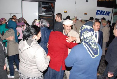 Zonguldak’ın Ereğli ilçesinden kutsal topraklara giden hacı kafilesinin ilki dün gece Ereğli’ye döndü. 73 kişilik kafileyi otobüs terminalinde sevenleri karşıladı.