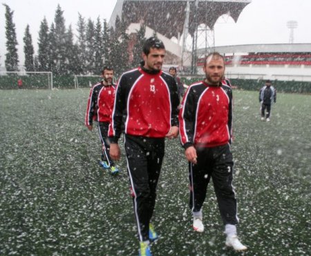 Soğuk ve yoğun kar yağışına rağmen antrenmana koşuyla başlayan futbolcular, daha sonra kendi aralarında çift kale maç yaptı. Oyuncuların morallerinin iyi olduğu gözlenirken, Başkan Sezai Onaran ve yönetim kurulu oyuncuları idman yaparken yalnız bırakmadı. Takımın üst üste şanssızlık yaşadığını belirten teknik direktör Murat Erkmen, "2. yarıya başladığımızdan beri takım olarak bir türlü form tutturamadık. Maalesef bir şansızlıktır aldı gidiyor. Biz her maça kazanma parolasıyla çıktık. Önümüzde 4 maç var. Hepsine talibiz, hepsine kazanmak için çıkacağız. Sonucunu bekleyeceğiz ve nerede olacağımızı hep birlikte göreceğiz." şeklinde konuştu.