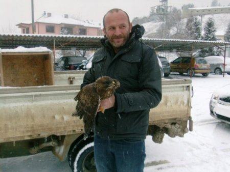 Taraklı Termal Tesisi inşaatında çalışan işçiler, yaralı bir şahin buldu. İşçiler, şahini Gıda Tarım ve Hayvancılık İlçe Müdürlüğü'nde görev yapan veteriner hekim Seyrani Dertioğlu'na götürdü. Yapılan muayenede şahinin kanadının kırık olduğu belirlendi. Yaralı şahini tedavi altına alan Dertioğlu, "Tedavisi devam ediyor. Her gün ciğerle besliyorum. Birkaç gün içinde sargılarını çıkartacağım. Gördüğüm kadarıyla kemikleri sağlam. Uçabilirse doğaya salacağım." dedi.