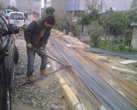 Bahar mevsimi ile birlikte İstanbul'da inşaat yapanların sayısı arttı. İstanbul'un Ataşehir ilçesine bağlı Örnek Mahellesi'ndeki bir işçisi, demirleri işte böyle kesti.