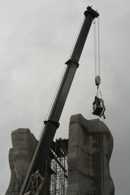 İnsanlık Anıtı'nda çalışmalarını sürdüren taşeron firma çalışanları etüt çalışmalarında içinin boş olduğu ifade edilen anıtın içi dolu çıkınca daha 3'üncü parçada 67 ton ağırlığa ulaştı. Çalışanlar 370 ton olduğu ifade edilen anıtın ağırlığının daha fazla çıkacağını söylüyor.