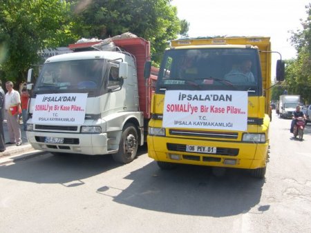 İpsala Kaymakam Vekili İhsan Emre Aydın başkanlığında yürütülen yardım kampanyasına İpsala çeltik komisyonu başkanlığı ile çeltik üreticileri birliği tam destek verdi. Kampanya ya 40 ton hedefle yola çıkan Yetkililerin İpsalalı hayırseverler tarafından kampanyaya gösterdikleri ilgi sayesinde 62 ton pirinç toplayarak duyarlılıklarını gösterdiler. Yardım kampanyasına başta çeltik üreticileri olmak üzere toplam 60 kişi katıldı. Çeltik üreticileri birliği tarafından açılan banka hesabında toplanan nakitle birlikte 1 ton 100 kg un da yardım kamyonuna yüklenerek Somali’ ye gönderildi. 19 ağustosta 2011 başlatılan kampanya 25 ağustos 2011 Perşembe (bu gün) günü toplanan yardımlar saat 14.00 de İpsala kaymakamlığı önünde düzenlenen törenle Kızılay genel merkezine ulaştırılmak üzere Kızılay Edirne şube başkanı Metin Kıray’ a teslim edildi.