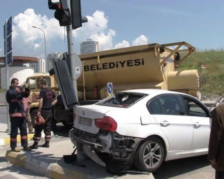 Ümraniye'de, kırmızı ışıkta geçtiği iddia edilen kamyon, iş adamı Hasan Yılmaz'ın oğlu Suat Yılmaz'ın kullandığı otomobile çarptı. Araçta sıkışan Yılmaz'ı itfaiye ekipleri kurtardı. Yılmaz'ın hayati tehlikesinin bulunmadığı öğrenildi.