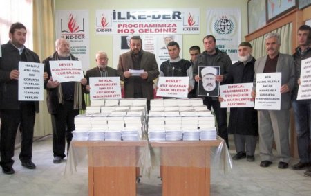 Atıf Hoca da şapka kanunu çıkmadan önce yazmış olduğu 'frenk mukallitliği' adlı kitabı bahane edilerek, Ankara'da basit bir yargılamayla doğru dürüst delil olmadan idam edildi. Yapılan bu haksızlığı halkımıza anlatmak için Mehmet Sılay'ın 'İskilipli Atıf Hoca' adlı kitabından 300 adet getirdik 'İlke-Der'in Düşünen Topluma Hediyesi' adı altında ücretsiz dağıtacağız. İstiyoruz ki insanlar bu kitabı okusunlar ve çevrelerini aydınlatsınlar. Ayrıca, Atıf Hoca'nın hayatıyla ilgili bir bildiri hazırlayıp broşür şeklinde halka dağıtmayı planlıyoruz, Hocaefendi'nin hayatını konu edinen 'Kelebekler Sonsuza Uçar' filmini de vatandaşlarımıza hediye edeceğiz. Ölüm yıldönümü olan 4 Şubat Cumartesi günü ise İskilip'te bulunan mezarı başında Atıf Hoca'yı anacağız, bu anma programlarımıza bütün kardeşlerimizi davet ediyoruz.'' diye konuştu.