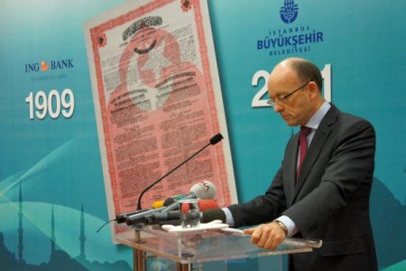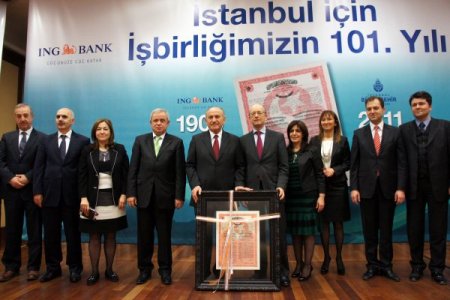 Galata Köprüsü’nün yenilenmesi 101 yıl önce ING Bank'tan kredi alan İstanbul Büyükşehir Belediyesi, aynı banka ile ulaşım projeleri için kredi anlaşması yaptı. Toplantıda 101 yıl önce imzalanan anlaşma belgesi Kadir Topbaş’a hediye edildi. İNG Bank’tan alınan kredinin Haliç Metro Geçiş Köprüsü, Kadıköy-Kartal Metro İnşaatı ve muhtelif projelerde kullanılacağı bildirildi. İstanbul Büyükşehir Belediyesi ile İNG Bank’ın yolları 101 yıl sonra yeniden kesişti. 1909 yılında Galata Köprüsü’nün yenilenmesi için İNG Bank’ın köklerinin dayandığı Baring Brothers Bank, Osmanlı İmparatorluğu'na kredi vermişti. Aradan geçen 101 yıldan sonra belediye, çeşitli projelerde kullanmak üzere İNG Bank ile 67,5 milyon Euruluk anlaşma yaptı. İstanbul Büyükşehir Belediyesi kokteyl salonunda yapılan tanıtım toplantısında İNG Bank Türkiye İcra Kurulu Başkanı (CEO) Wilfred Nagel, İBB Başkanı Kadir Topbaş’a 101 yıl önceki anlaşmaya ilişkin sözleşmenin bir kopyasını hediye etti. Programda kısa bir konuşma yapan İNG Bank Türkiye CEO’su Nagel, genç nüfusu ve hızlı büyüyen ekonomisi ile Türkiye’nin İNG Bank için önemli bir ülke olduğunu vurguladı. Nagel, “Türkiye ile geçmişimiz ve işbirliğimiz 100 yıl öncesine dayanıyor. Sağladığımız kredilerle İstanbul’da alt yapı ve ulaşım çalışmalarına destek veriyoruz.” dedi. Türkiye’de büyümek istediklerini aktaran Nagel, bundan sonra da çeşitli projelerde destek olmaya devam edeceklerini belirtti. Başkan Kadir Topbaş ise konuşmasında, büyük yatırımların finansal destek ve kredilerle gerçekleştirilebildiğini belirtti. Başkan Topbaş, “100 yıl önce olduğu gibi bugün aynı bölgede kullanmak üzere İNG Bank’tan kredi alıyoruz.” dedi. Belediye olarak büyük çapta yatırımlar yaptıklarını hatırlatan Başkan Topbaş, “Mart ayı sonu itibariyle görevde 7 yılımızı dolduracağız. Bu sürede 36 milyar TL, yani 24 milyar dolar yatırım yaptık. Bu 24 milyar doların 3 milyarı doları borç. Bu borcun 2 milyar doları iç borç, 1 milyar doları dış borç. Biz bu borcu 2028 yılına kadar ödeyeceğiz. Bunu birilerinin, ‘İstanbul battı, İBB yatırım yapamıyor’ şeklindeki beyanları üzerine nazire olsun diye söylüyorum. Yani büyük iş yapıyorsanız büyük kaynaklar kullanmak zorundasınız.” diye konuştu. İstanbul’daki yatırımların öz kaynaklarla yapılmasının mümkün olmayacağını dile getiren Topbaş, “Biz öz kaynaklarımızı kullanıyoruz. Kredileri de yüzde 10’luk bir kısım için kullandık. İstanbul, bir ülke ölçeğinde. Türkiye’deki tüm kurumların tüm bakanlıkların, belediyelerin toplam yatırımlarının yüzde 26’sını biz yapıyoruz.” dedi. Yaptıkları yatırımlarla İstanbul’un çehresini değiştirdiklerini belirten Başkan Topbaş, belediye ile iş yapmanın da prestij olduğunu vurguladı. Başkan Topbaş, İBB ile birlikte iş yapmak, İBB ile birlikte yürümek, İBB’ye partner olmak ayrı bir referanstır. Bu güç anlamına gelir.” değerlendirmesinde bulundu. İNG Bank ile 101 yıl önce yapılan anlaşmanın belgesinin kendisine verilmesinin çok anlamlı olduğunu dile getiren Başkan Topbaş, “Bu belge belediyemizin arşivine girdi. Çok manidar. İNG yetkilerine teşekkür ediyorum.” dedi. Konuşmaların ardından Başkan Topbaş kendisine hediye edilen 101 yıl önceki kredi sözleşmesinin belgesi ile birlikte basın mensuplarına poz verdi. CİHAN