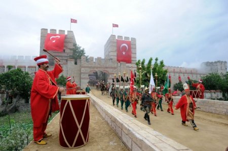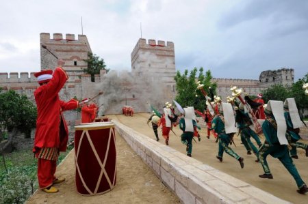 İstanbul’un fethinin 558. yıldönümü temsili fetihle bir kez daha kutlandı. Vatandaşların ilgiyle izlediği temsili Osmanlı askerleri mehter marşları eşliğinde surlara çıktı!