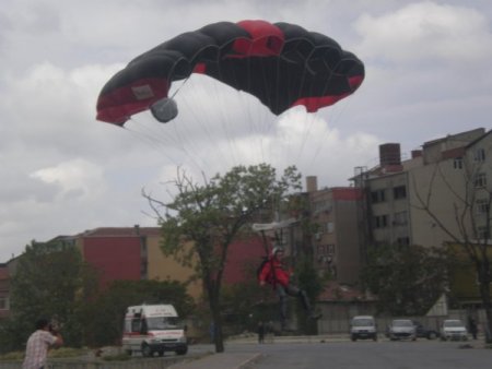 Paraşütçü Şahin Şahin ise, “Türkiye’de iki üç kişi bu işi yapıyor. Ne kadar alçak o kadar heyecanlı oluyor. Bu ideal bir yükseklik. Fetih kutlamalarına denk gelmesi çok iyi oldu. Bu güne denk gelmesi çok iyi oldu.” diye konuştu.