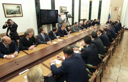 Rusya Devlet Başkanı Vladimir Putin, Başbakan Dmitri Medvedev’in önerdiği yeni kabineyi imzalamasının ardından hükümet üyeleri ile bir araya geldi. Yüzde 75 yenilenen yeni Rusya hükümeti ilk kez görüntülendi.