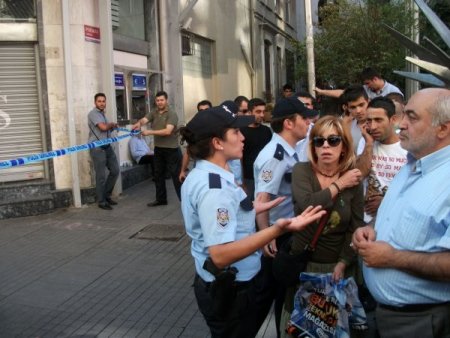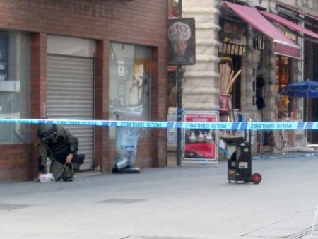 İstiklal Caddesi Odakule mevkiinde İBB’ye ait kitap satışının yapıldığı bina önünde içinde sıvı bir madde olan poşet gören vatandaşlar hemen polise haber verdi. Olay yerine gelen emniyet güçleri poşetteki şişede patlayıcı madde olması ihtimaline karşılık hemen caddeyi yaya ve araç trafiğine kapattı. Poşete 50 metre mesafede güvenlik şeridi oluşturan polis ekipleri bir yandan da bomba imha ekiplerine haber verdi.