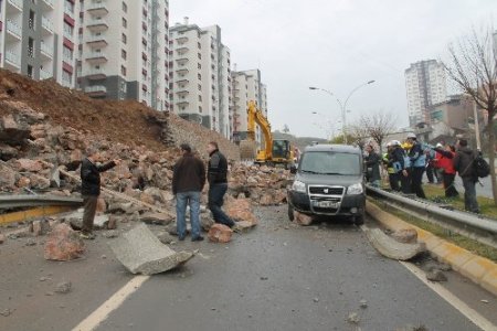 Kocaeli'nin İzmit ilçesinde bir bulvar üzerindeki sitenin istinat duvarı çöktü. O esnada yoldan geçen bir araçta bulanan sürücü canını zor kurtardı. Araçta maddi hasar meydana geldi.