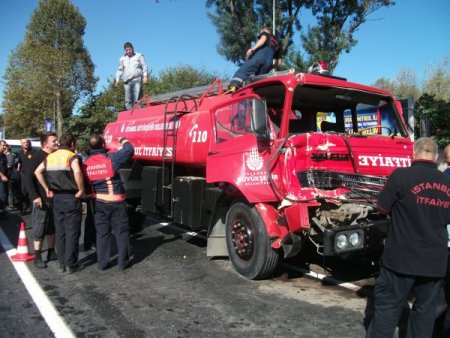 Araç şoförü İsmail Koç ise kazayı yara almadan atlattı. İstinye Devlet Hastanesi’ne kaldırılan Fatih Kahraman’ın hayati tehlikesinin bulunmadığı, vücudunda ezikler olduğu öğrenildi. Kaza nedeniyle ön tarafı tamamen tahrip olan su tankerindeki malzemeler ise başka bir itfaiye aracına taşındı.