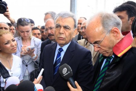İzmir Büyükşehir Belediyesi'ne yönelik yapılan operasyonda İzmir Adliyesi'ne getirilen zanlıların sorgusu devam ederken Başkan Aziz Kocaoğlu (ortada) da adliye önüne gelerek destek oldu. CİHAN