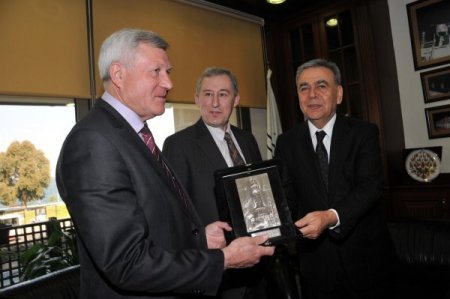 İzmir ile Rusya Volgograd şehri arasındaki kardeş kent protokolünün imzası için kente gelen Rus heyet, İzmir Büyükşehir Belediye Başkanı Aziz Kocaoğlu’nu makamında ziyaret etti. Konuk heyette Volgograd Merkezi Bölge Belediye Başkanı Vladimir Sobakar, Ticaret Odası Başkanı Aleksander Belitskiy, Büyükşehir Belediyesi Uluslararası İlişkiler ve Dış Ekonomik İlişkiler Departmanı Sorumlusu Aleksander Marenov, Tüketici Pazarlama Müdürü Dmitriy Semenenko ve Volgograd Belediye Kuruluşları Yönetim Kurulu Temsilcisi İrina Ryabuhina yer aldı.