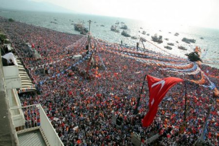 AK Parti Genel Başkanı ve Başbakan Recep Tayyip Erdoğan, İzmir Gündoğdu meydanında vatandaşlara hitap etti. Onbinlerce İzmirlinin akın ettiği miting alanının tamamı, konuşma öncesi tıklım tıklım doldu. AK Parti'nin bugüne kadar düzenlediği mitinglere göre seyirci oranının çok fazla olması dikkat çekti. Polisin geniş güvenlik önlemleri altında meydana giriş yapan vatandaşlar, 1. Kordon'daki çimlerin üzerinde oturarak başbakanı dinledi.